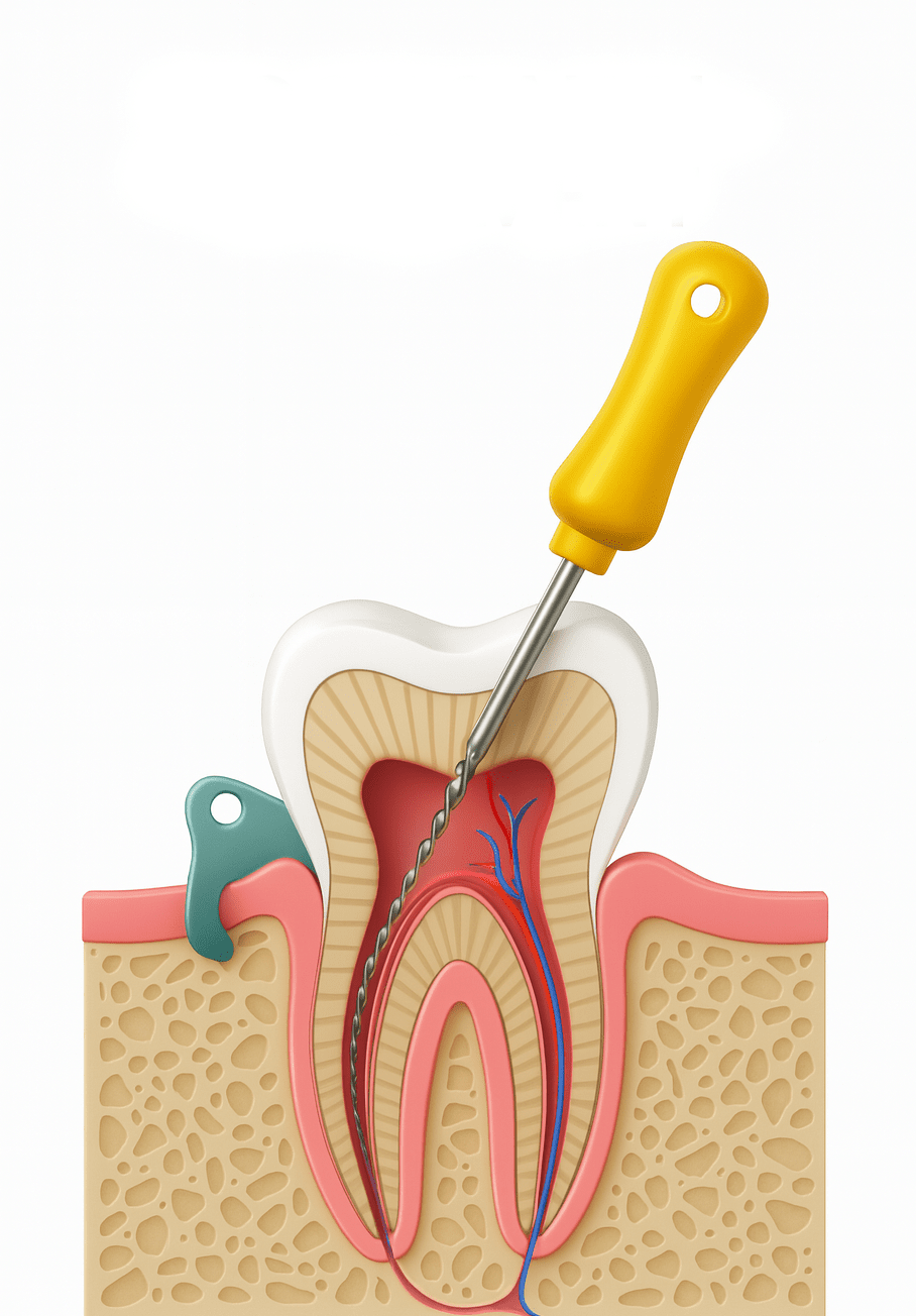 No—under local anaesthesia a root canal relieves pain rather than causes it. With modern rotary tools it’s usually finished in 1–2 visits, and a crown is often advised to protect the tooth.
